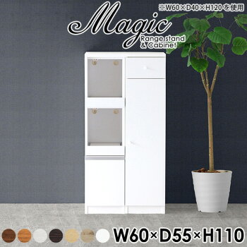 magic レンジ台×キャビネット W60×D55×H110 木目サイズサイズ:約幅600 奥行き550 高さ1100 mm材質[天板・スライド棚]メラミン樹脂化粧合板[前板]ブラウン・ダークブラウン・チーク/デルナチュレ化粧合板ホワイト/ポリエステル化粧合板ナチュラル・ホワイトウッド・オーク/強化紙[側板・内部]プリント化粧合板カラーブラウン/ダークブラウン/ホワイト/北欧チーク/ナチュラル/ホワイトウッド/オークからお選び下さい。