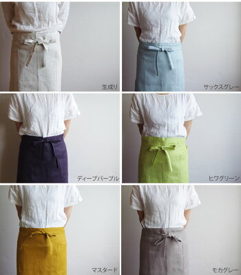 リネン100% レディースエプロン/男女兼用エプロン/カフェエプロン/ギャルソンエプロン ショート丈 日本製メール便1枚までOK