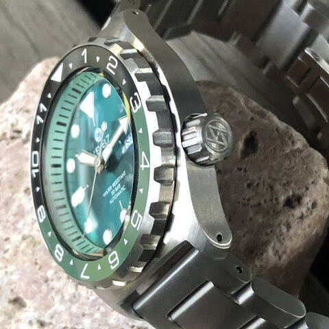 カスタムパーツ(G001)風防より、ドームのRを小さくし、立ち上がり位置を下げ、より風防のTOPを高くした風防を装備、文字盤、針には、蓄光の最高峰、スーパールミノバC3を採用しています。