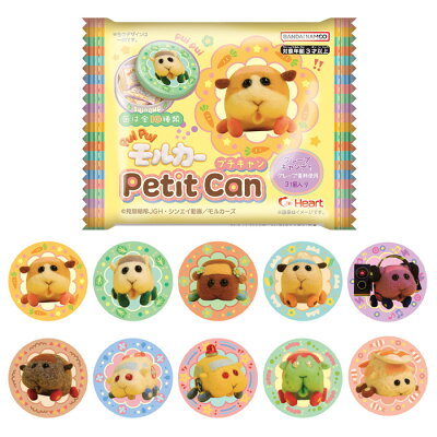 ≪全10種/10個入り≫ ハート PUI PUI モルカープチキャン大人気「PUI PUI モルカー」のデザインが入ったミニ丸缶にキャンディを3個入れました。
