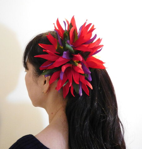 フラダンス衣装 髪飾り 花飾り スパイダーリリー ヘアクリップ レイ イベント フラ CL-77R バードオブパラダイスクリップ レッド 赤