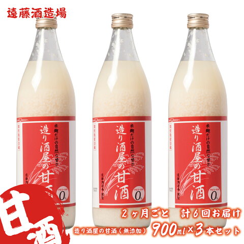 【ふるさと納税】【定期便】《2ヶ月ごと計6回お届け》造り酒屋の甘酒(無添加)900ml×3本セット《株式会社遠藤酒造場》飲料 あまざけ