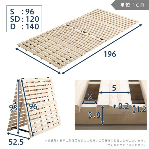 梱包サイズ:(約)50x12x98cm梱包重量:(約)7.3kg 【関連キーワード】 ◆送料無料◆すのこマット ぎっしり28本 カビ対策 湿気対策 布団干しにも! ベッド すのこベッド シングル すのこ 折りたたみベッド 折りたたみ 二つ折り 布団が干せる 桐 ヘッドレス 除湿 折り畳み すのこマット 折りたたみベット仕様詳細商品名桐すのこベッド 2つ折りタイプ(96cm・シングルサイズ)サイズシングル:(約)幅96x奥行196x高さ3.8cmセミダブル:(約)幅120x奥行196x高さ3.8cmダブル:(約)幅140x奥行196x高さ3.8cmカラーナチュラル特徴布団の下に一枚敷くだけで嫌な湿気を逃がします!使わない時はコンパクトに収納可能材質本体:桐材滑り止め:EVA樹脂静止耐荷重180kg梱包サイズシングル:(約)幅50x奥行12x高さ98cmセミダブル:(約)幅50x奥行22x高さ62cmダブル:(約)幅50x奥行22x高さ72cm注意※商品の仕様は、随時改良するように努めております。