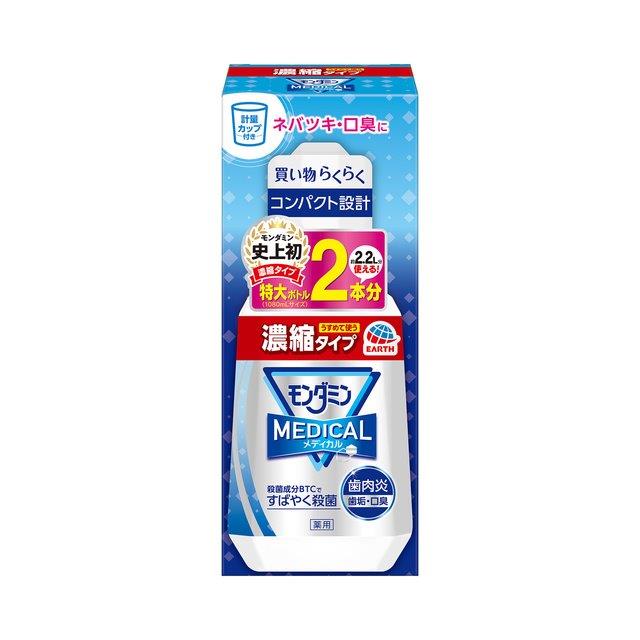 サイズ・重量 容量 220ml×36個セット 商品説明 JANコード:4901080589019成分:塩化ベンゼトニウム(BTC)成分: 湿潤剤:濃グリセリン 溶剤:エタノール 香味料:香料(ハーブミントタイプ)、キシリット、スクラロース 可溶剤:POE硬化ヒマシ油 pH調整剤:リン酸2水素Na、リン酸1水素Na 粘度調整剤:ヒドロキシエチルセルロース 着色料:青色1号、黄色4号製造国:日本製造販売元:アース製薬株式会社区分:医薬部外品 広告文責 (有)パルス 048-551-7965『【36個セット】【医薬部外品】モンダミン メディカル 濃縮タイプ 220mlx36個セット』健康用品 デンタルケア 洗口液 口臭予防 マウスウォッシュ