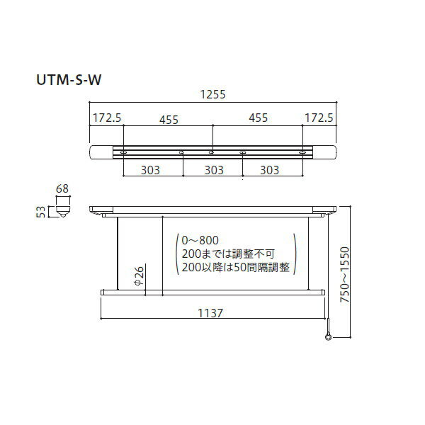 川口技研 ホスクリーン 室内物干 昇降式 UTM型 UTM-S-W 1255mm 1セット